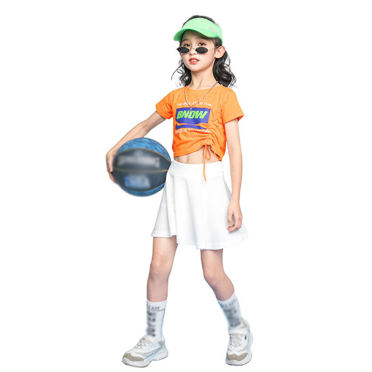 セットアップ 二点セット スカートセット ヒップポップ Tシャツ オレンジ 子供 女の子 へそ出し ダンスウェア ジュニア スポーツ ジャズ カジュアル シンプル 普段着 応援団 運動会 110~18