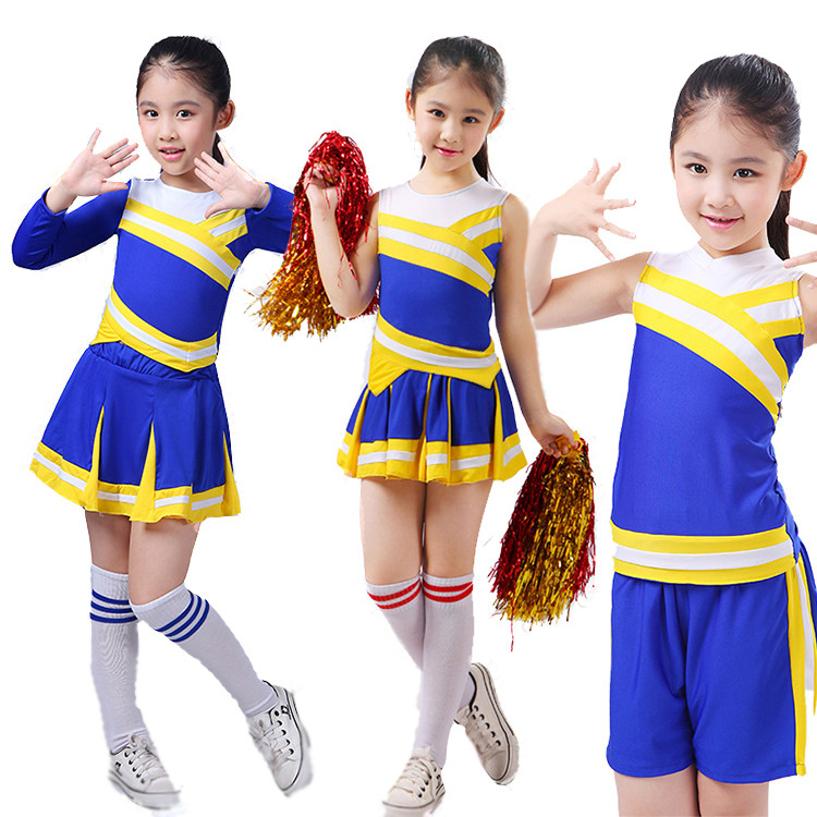 チアガール衣装 二点セット スカートセット パンツセット 長袖 ノースリーブ 子供 女の子 男の子 スポーツ カジュアル チア コスプレ 普段着 応援団 運動会 ブルー パーティー 120~170