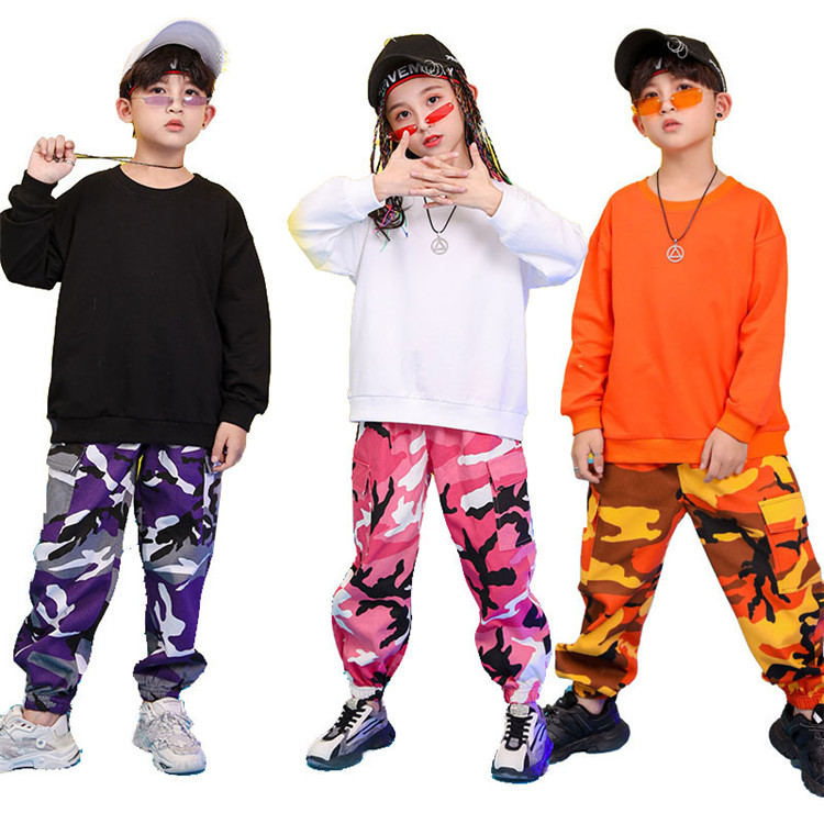 シャツ トレーナー 長ズボン 迷彩 長袖 春秋 ヒップポップ ラウンドネック 子供 女の子 ダンスウェア ジュニア スポーツ ジャズ カジュアル シンプル 普段着 応援団 運動会 -175