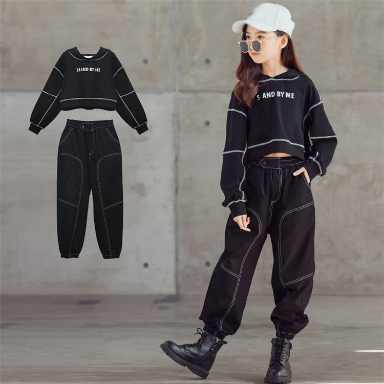 シャツ トレーナー パンツ ブラック 長袖 春秋 ヒップポップ 無地 子供 女の子 ダンスウェア ジュニア スポーツ ジャズ カジュアル シンプル 普段着 応援団 運動会 120~165