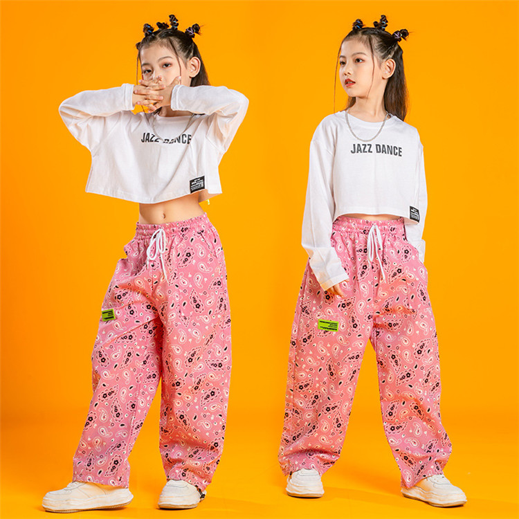 二点セット シャツ ワイドパンツ 白 長袖 ヒップポップ へそ出し 子供 女の子 ダンスウェア ジュニア スポーツ ジャズ カジュアル シンプル 普段着 応援団 運動会 110~170