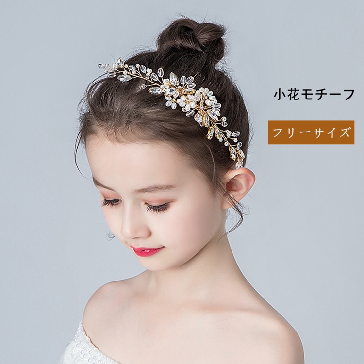 ヘアアクセサリー 髪飾り 子供 女の子 キッズ フラワー ヘアバンド パール ビーズ 花 可愛い 発表会 舞台 発表会 ピアノ発表会 プレゼント