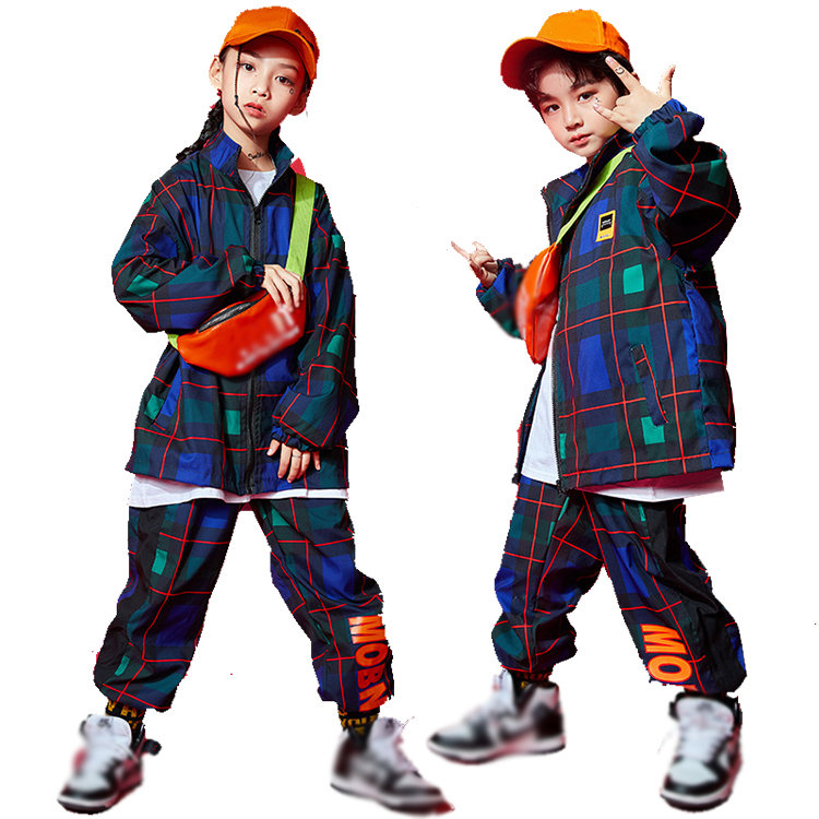 セットアップ かっこいい チェック柄 キッズ ヒップホップ ダンス衣装 ガールズ ゆったり ファッション ダンストップス ジュニア 演出服 長ズボン 110~170CM 普段着 韓国風 男女兼用 WU