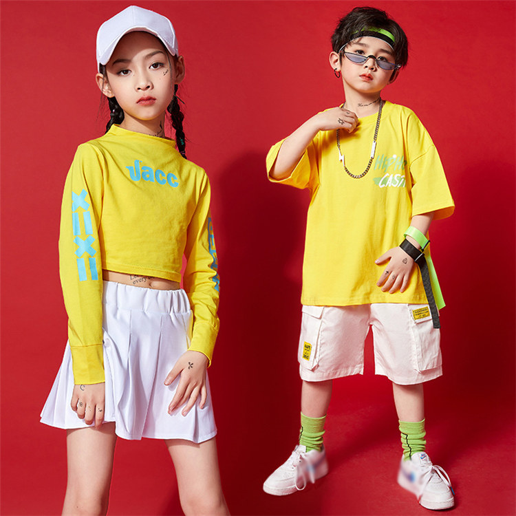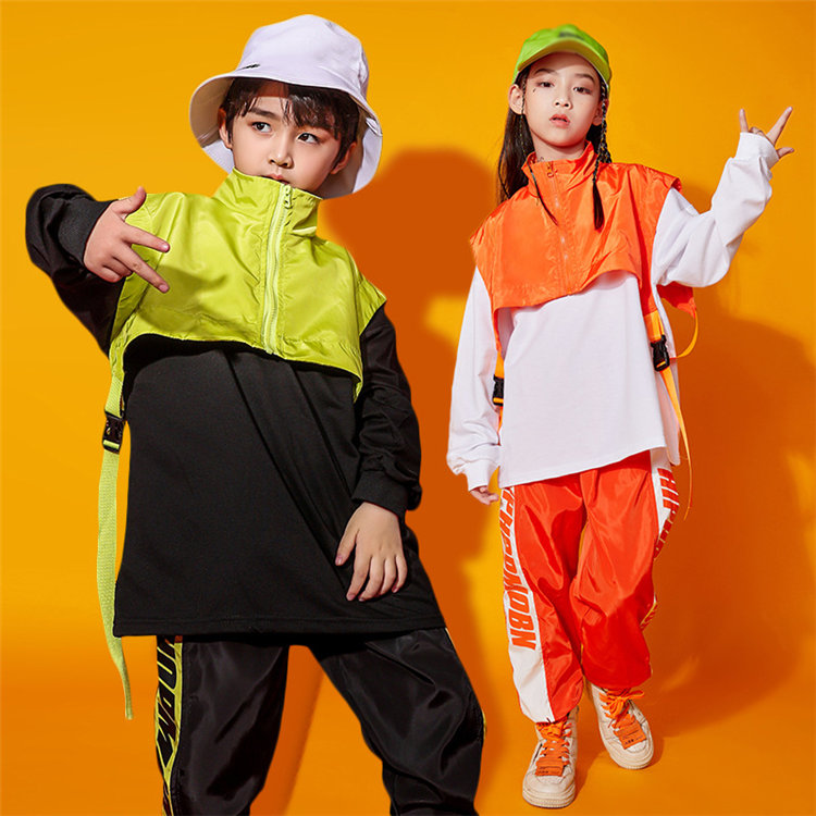 オレンジシャツ 子供 ダンス 衣装 ヒップホップ ノースリーブ ホワイト スカート 長ズボン 女の子 男の子 キッズ シンプル ステージ衣装 カジュアル 普段着 ジャズ ファション ゆったり 応援団