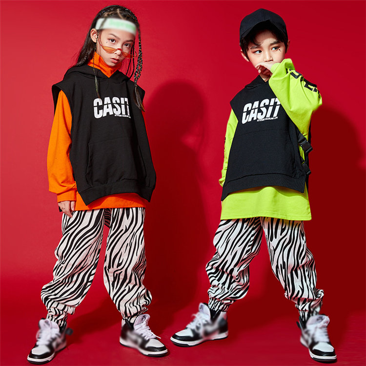 子供 ダンス 衣装 ヒップホップ シャツ 長ズボン ゼブラ柄 長袖 ベスト キッズ 普段着 オシャレファション 韓国風 カジュアル ゆったり 男の子 女の子 派手 ステージ衣装 ジャズ 110~170