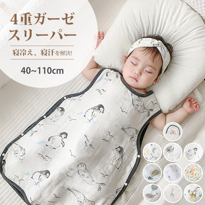 ふんわりあったか ベビースリーパー 軽くてパチパチしにくい生地だから 高品質なガーゼ素材で赤ちゃんの肌をやさしく包められます