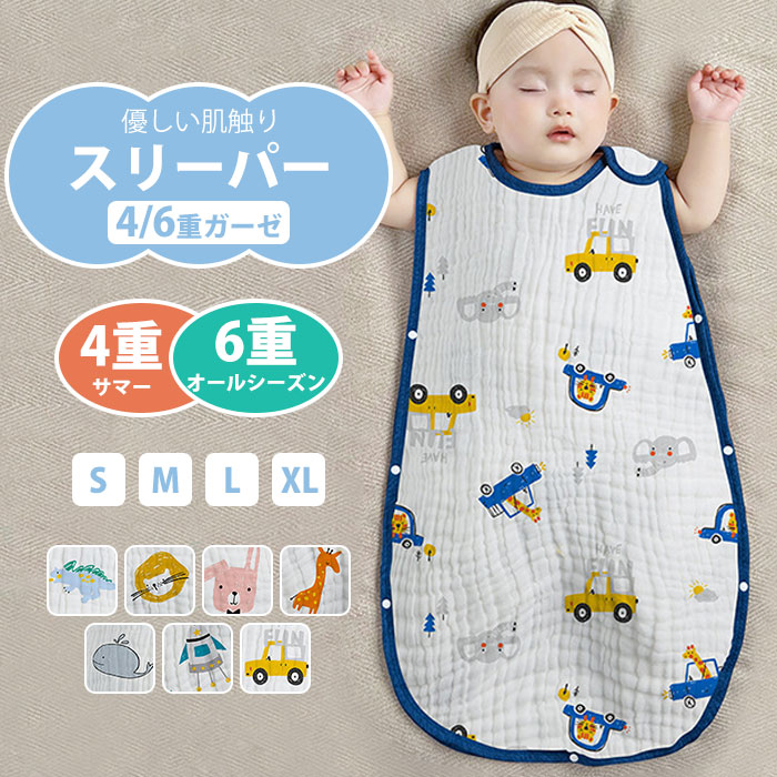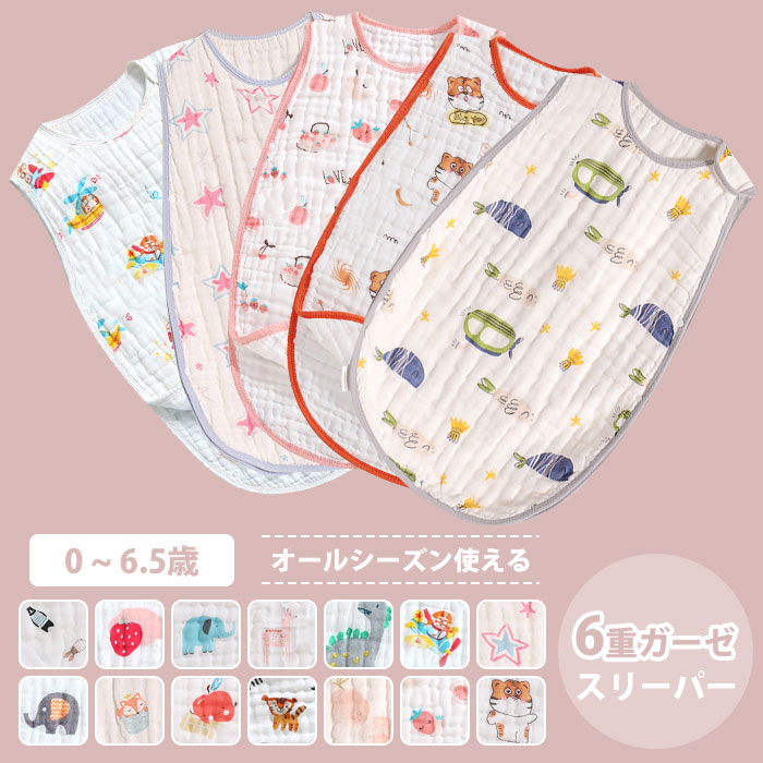 スリーパー ベビー 赤ちゃん 袖付き 6重ガーゼ 長袖 柔らか 春 秋 冬 寝袋 寒さ対策 防寒 暖かい あったか 保温