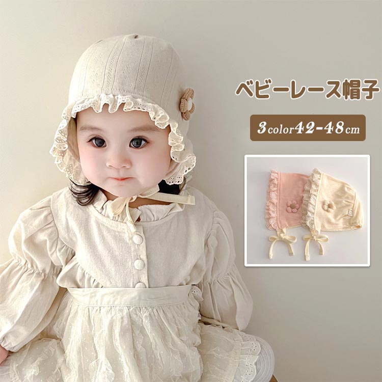 ベビー 帽子 ハット レース あご紐 つば広 お出かけ 日焼け対策 暑さ対策 お散歩 外遊び お宮参り ボンネット キュート 日よけ 風よけ 通気性 赤ちゃん 新生児