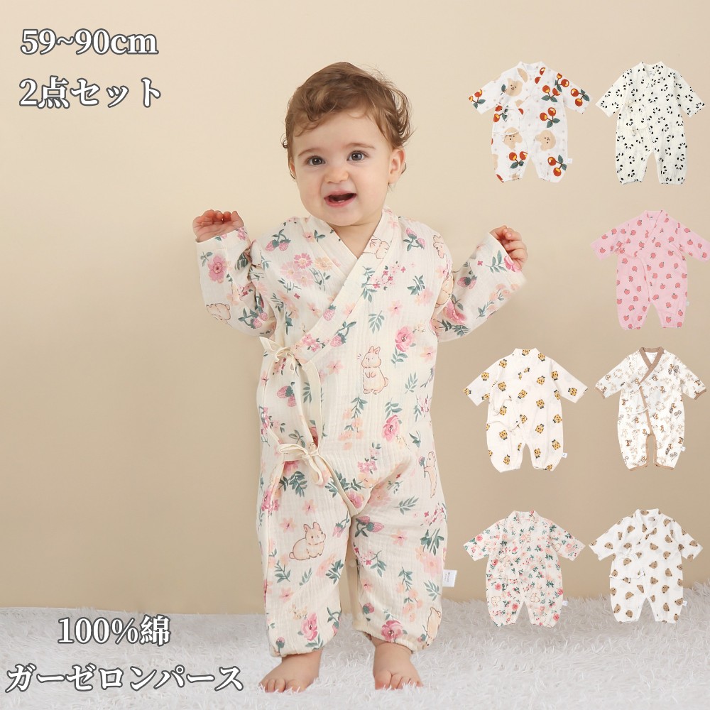 ベビー服 ロンパース 男の子 女の子 新生児 綿100% 長袖 2点セット カバーオール 長袖 男の子 女の子 夏 前開き 新生児 カバーオール 長袖