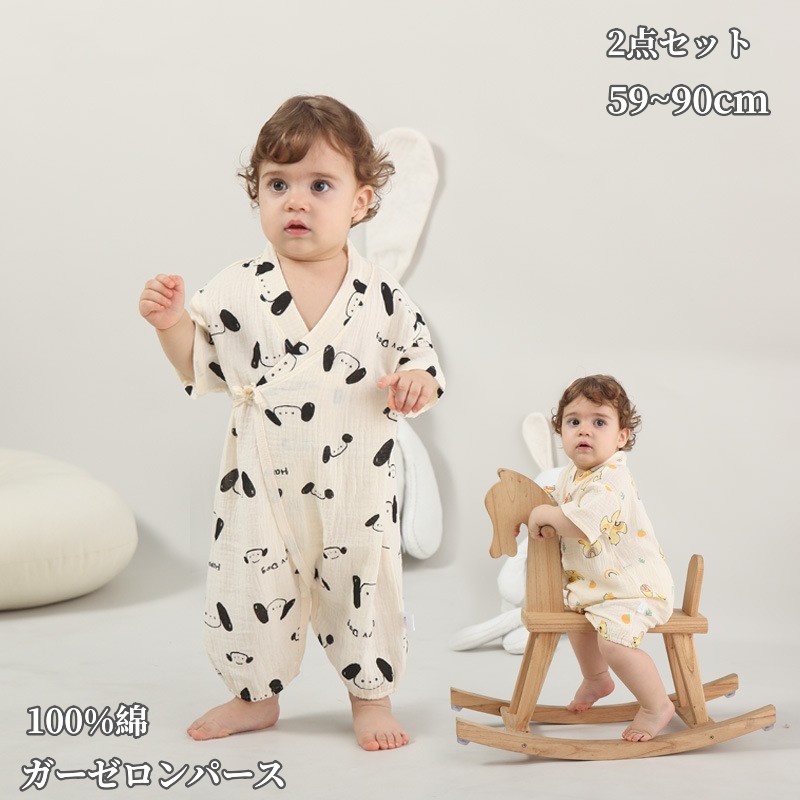 ベビー服 ロンパース 男の子 女の子 新生児 綿100% 半袖 2点セット カバーオール 半袖 男の子 女の子 夏 前開き 新生児 カバーオール 半袖