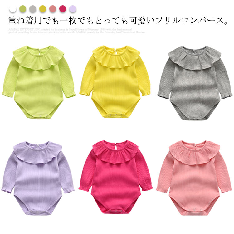 可愛い 女の子 長袖 インナー フリル 春 夏 秋 無地 新生児 赤ちゃん カバーオール コットン 出産祝い ベビー服 子供服 長袖ロンパース