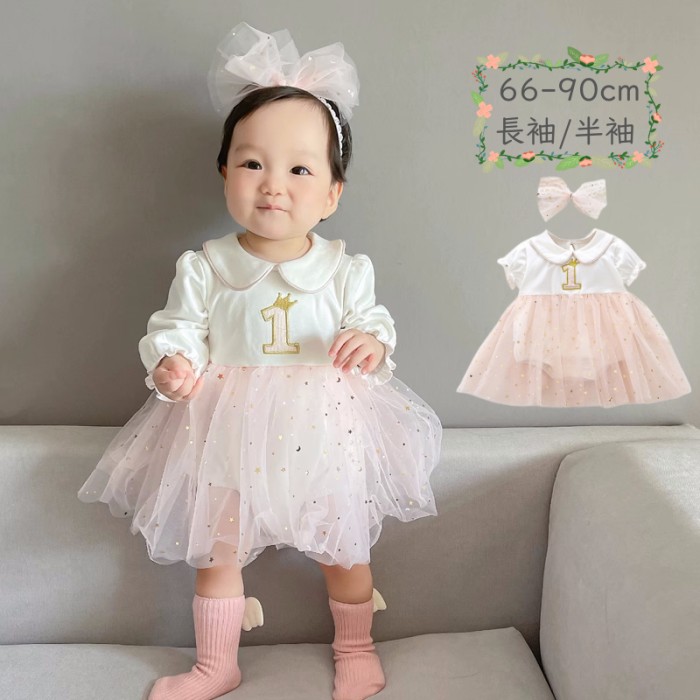 ベビー服 女の子 新生児 おしゃれ ドレス ヘアバンド 2点セット ベビー服 女の子 ロンパース ワンピース風 半袖 長袖 誕生日 出産祝い 66 73 80 90