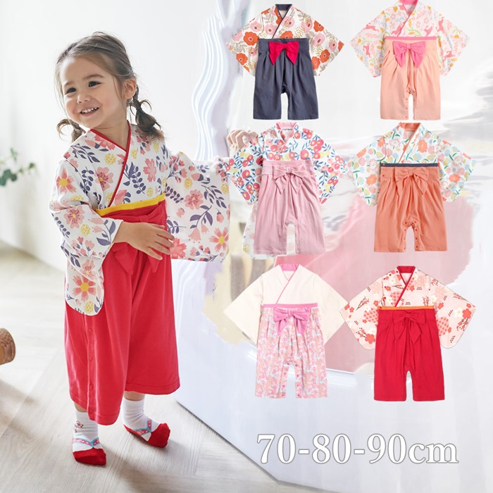 袴 ロンパース カバーオール ベビー 女の子 ベビー服 子供服 お宮参り お食い初め 60 70 80 90 95 100