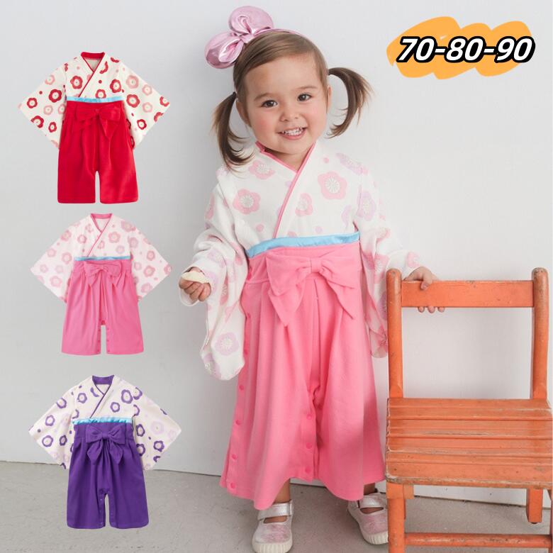 袴 ロンパース カバーオール ベビー 女の子 ベビー服 子供服 お宮参り お食い初め 70 80 90