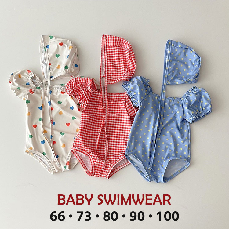 女の子ベビー用ワンピース水着2点セット 可愛い 3色 ホワイト ブルー レッドキッズ ベビー マタニティ ベビーファッション 水着