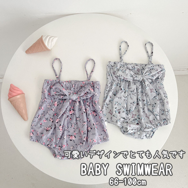 女の子ベビー用お花柄水着 可愛いロンパースのようなデザインでオムツ着替え便利ですキッズ ベビー マタニティ ベビーファッション 水着