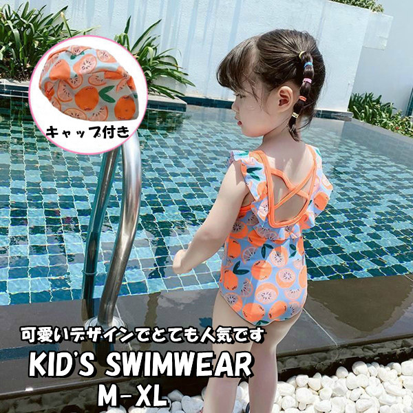 水着 スイムキャップ付き スイムウェア フリル 夏 プール 海 水遊び レジャー ノースリーブ アウトドア 室内 女の子 可愛い 学校用水着 幼稚園 保育園 海水浴 かわいい キッズ水着 子供用 スク