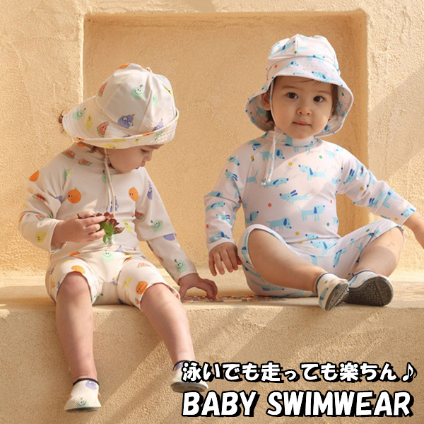 ベビー水着 長袖 お揃い 女の子 男の子 スイムウェア 帽子付き 2点セット かわいい キッズ水着 夏 ガード 幼稚園 保育園 ラッシュガード 海水浴 海 プール 水遊び 学校用水着 子供用 スク