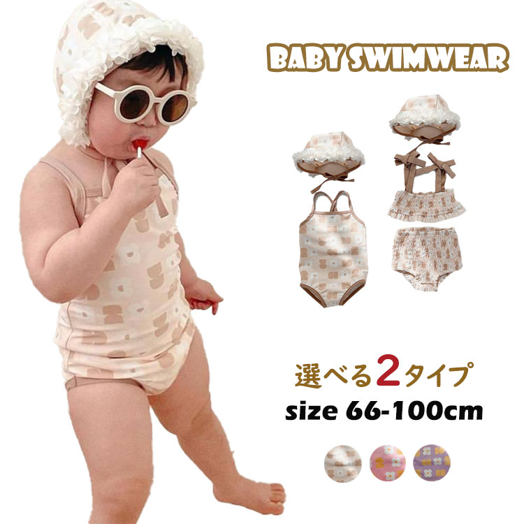 ベビー水着 ワンピース水着 セパレート水着 キッズ 女の子 ビキニ キャップ付き かわいい お花柄 3色 赤ちゃん スイムウエア スイムスーツ 保育園 幼稚園 オシャレ 水遊び 海 ビーチ 66 73