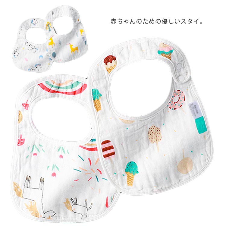 4枚セット スタイ よだれかけ 柔らか コットンガーゼスタイ ヨダレ エプロン お食事 お手拭き 綿100% ガーゼ 8重ガーゼ ガーゼハンカチ オシャレ お出かけ 通気性