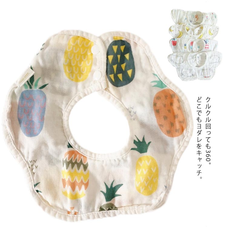ガーゼタオル 綿100% ガーゼ 4重ガーゼ ガーゼハンカチ 360度 お手拭き かわいい ベビー お食事エプロン 女の子 男の子 オシャレ よだれかけ