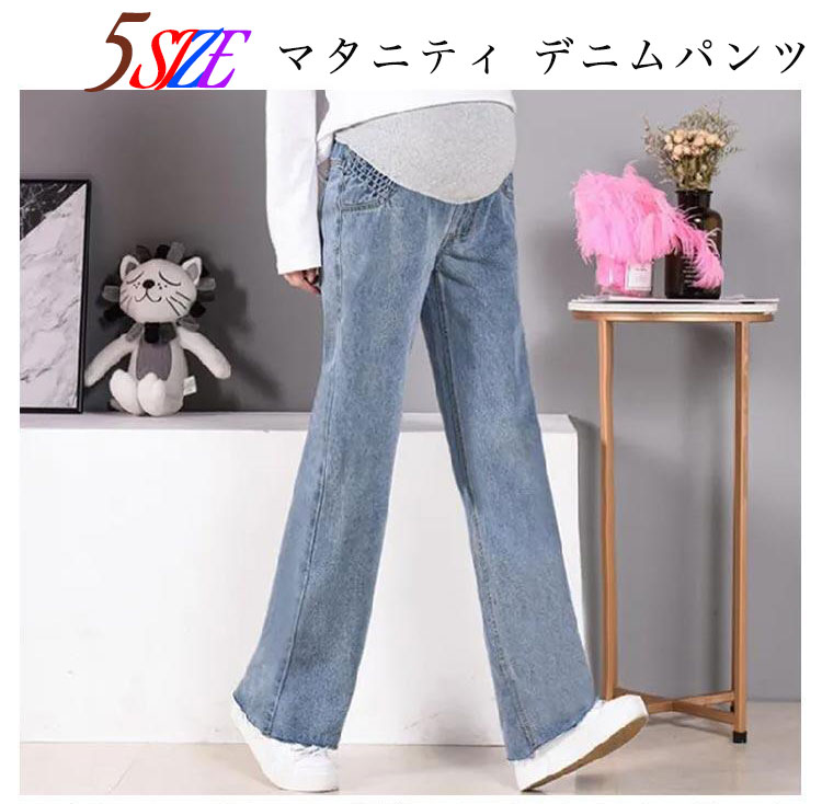 マタニティー パンツ 長ズボン 春秋 デニムズボン 腹サポート 着痩せ ストレート 普段着 ロングズボン 美形 オシャレ マタニティ 妊娠 産後 ジーンズ