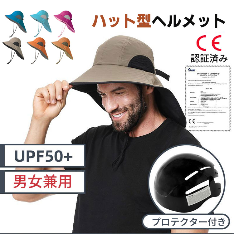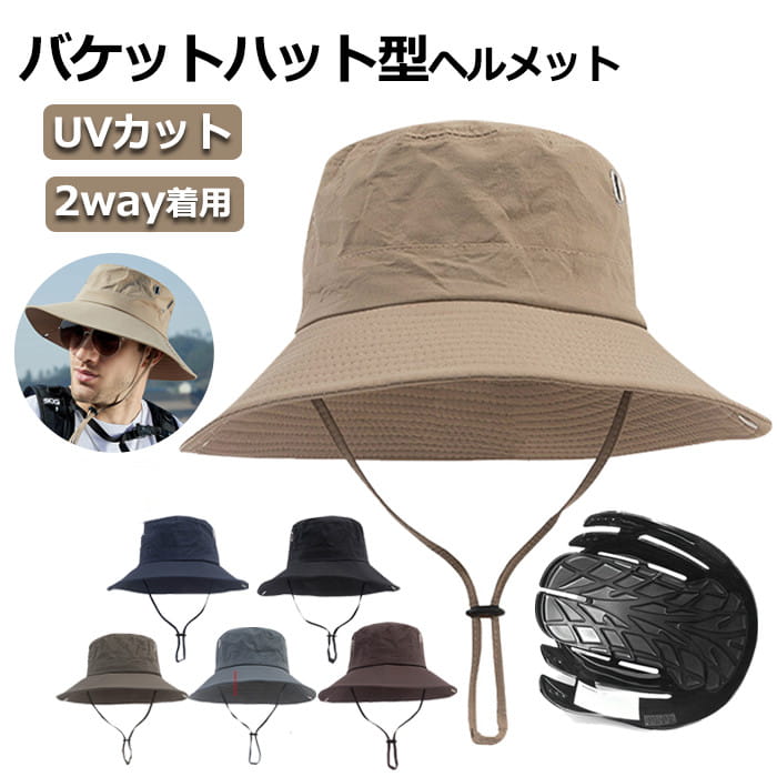 バケットハット型ヘルメット UVカット サンバイザー 夏用 バケットハット 通気メッシュ 蒸れない 落下防止 顎ひも付き 作業用 軽量 お洒落 男女兼用