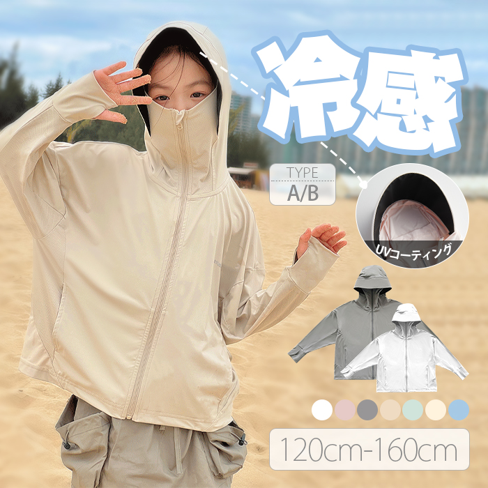 黒い遮光コーティング加工 6つ機能 360度紫外線対策 着るだけで対策 涼感素材 つば広いフードで 首や顔まで守れる万能パーカー 伸縮性、通気性抜群な素材で 夏でも涼しく運動しやすい