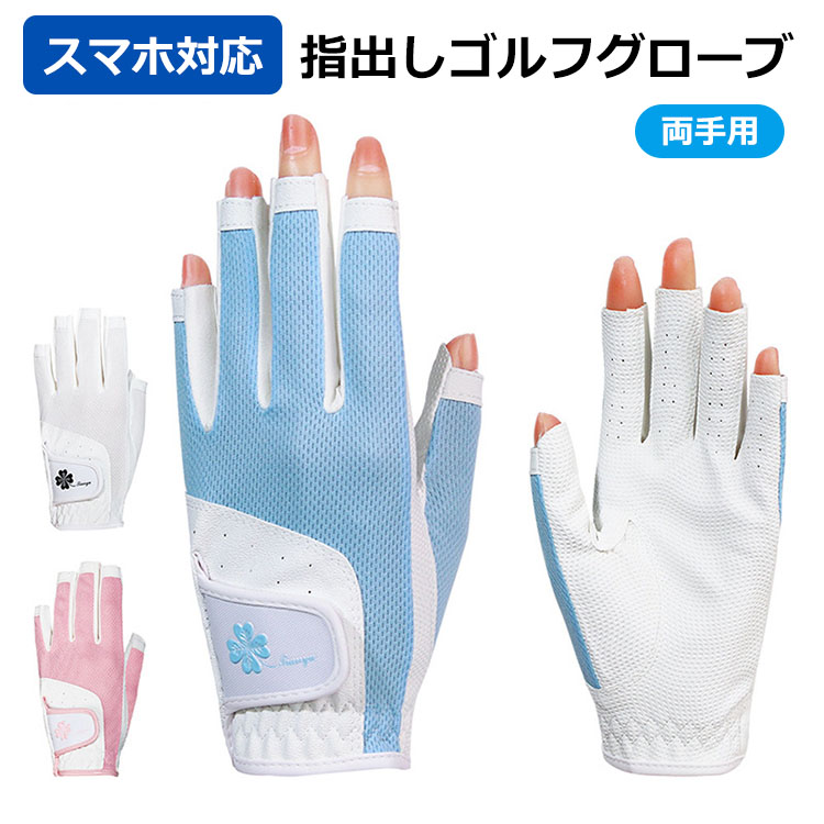 ゴルフグローブ レディース 手袋 両手用 指出し 指なし 指先カット ネイル スマホ対応 通気 むれない メッシュ生地 夏 初心者向け グリップ性 伸縮性 ストレッチ フィット