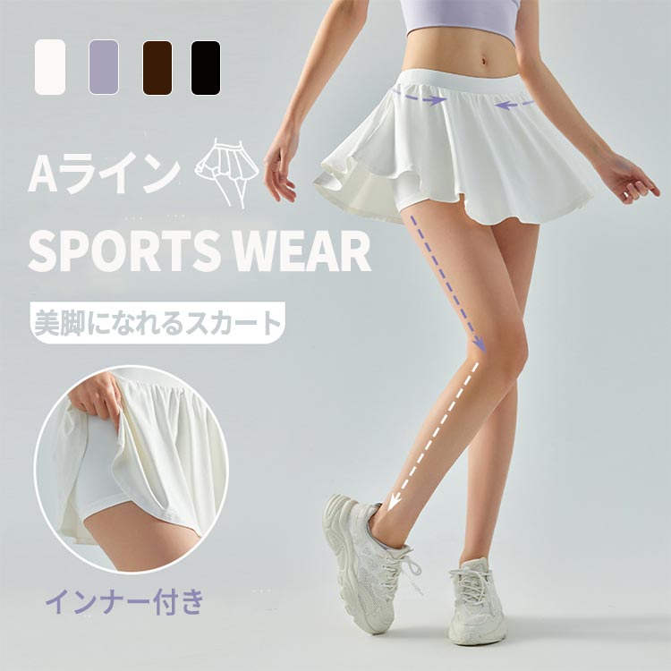 スカート レディース テニス スコート スパッツ一体型 ゴルフ フレア ポーツウェア プリーツスカート ミニスカート インナーパンツ付き テニス ゴルフ ランニング トレーニング フィットネス ヨガウ