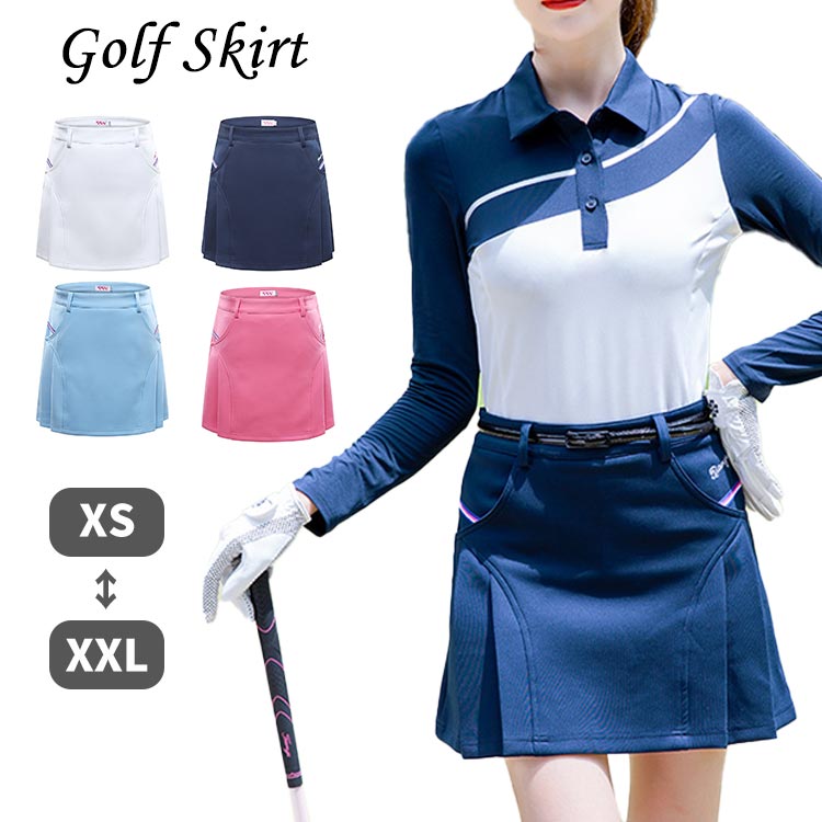 ゴルフウェア レディース ゴルフスカート プリーツスカート ゴルフウエア インナーパンツ付き 見せパン付き 裏地あり 大きいサイズ ゴルフグッズ テニス 運動 夏 可愛い おしゃれ お洒落 白 ネイビ