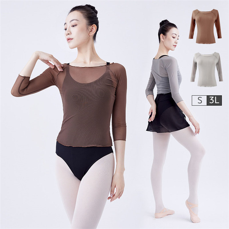 バレエレオタード コート シャツ 体操服 レディース バレエ衣装 大人 体操 ダンス 練習服 八分袖 バレエトップス 春秋 シンプル レッスン着 透け感 S-3L wudao-242