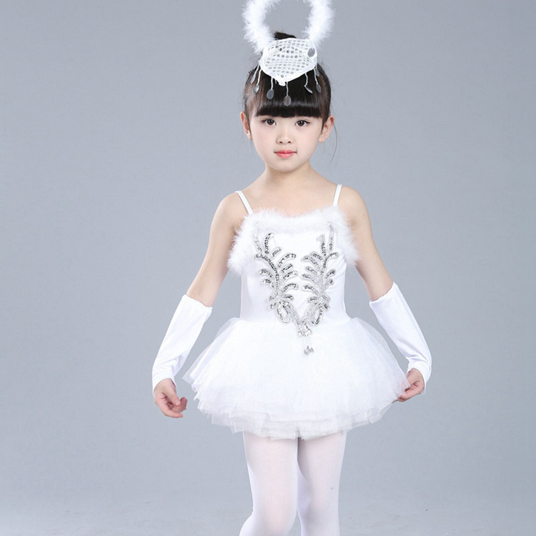 子供バレエ レオタード チュチュ 演出 バレエ 用品 高級感 ステージ 白鳥 キラキラ 女の子 チュールスカート ダンス服 新体操 ダンスウェア バレエ発表会 ホワイト 110-