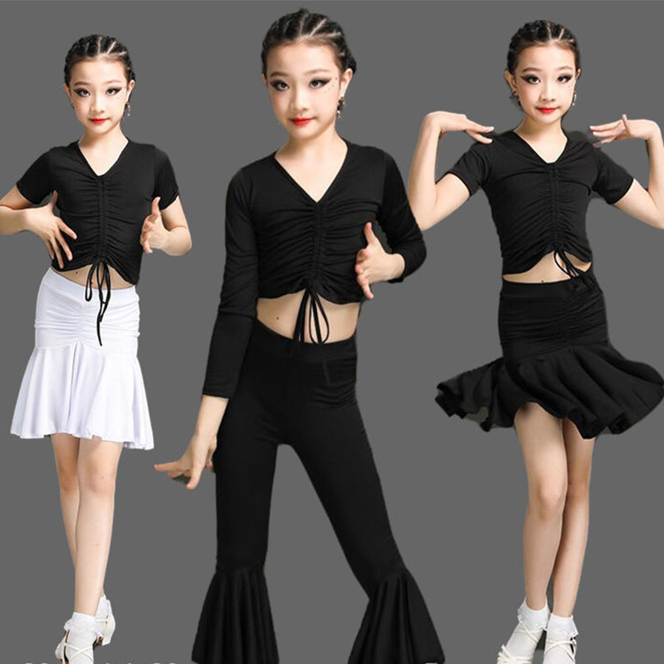 ラテンダンス 二点セット 社交ダンス キッズ ラテン おしゃれ ブラック 女の子 ダンスウェア latin 肩出し 発表会 舞台 競技 練習 演出 高級感 ダンスウェア 110~170cm wudao