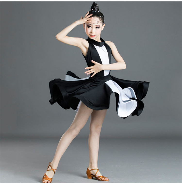ラテンダンス ワンピース 社交ダンス キッズ ラテン おしゃれ ブラック 女の子 ダンスウェア latin 発表会 舞台 競技 練習 演出 高級感 ダンスウェア 120~170cm wudao-532
