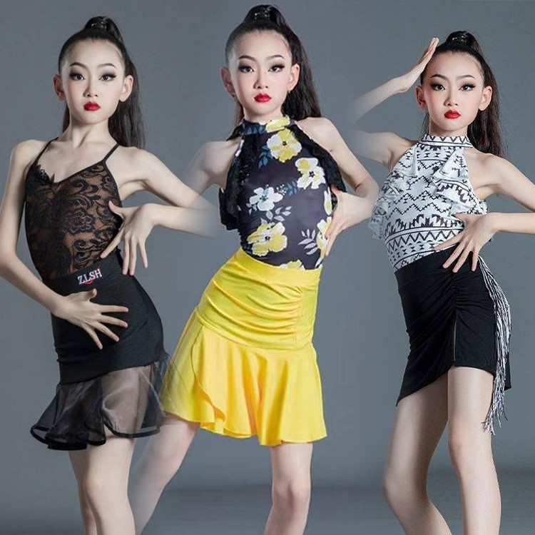 ラテンダンス 二点セット レオタード+スカート キッズ ラテン 演出 高級感 おしゃれ 女の子 ダンスウェア latin 発表会 舞台 競技 練習 ステージ 社交ダンス 120~170cm wudao