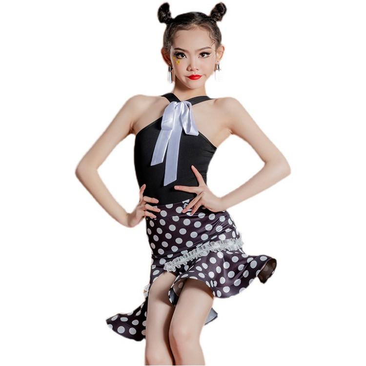 ラテンダンス 二点セット ダンスウェア 社交ダンス キッズ ラテン 女の子 可愛い 水玉 発表会 舞台 競技 練習 演出 ステージ 120~170 -538