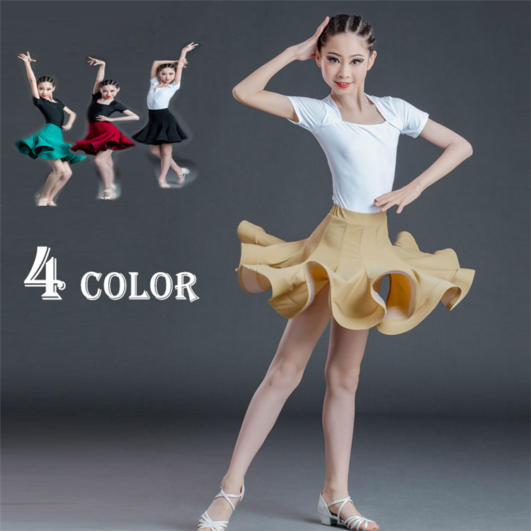 ラテンダンス 二点セット レオタード+スカート 社交ダンス キッズ ラテン 女の子 ダンスウェア latin 発表会 舞台 競技 練習 演出 ステージ S~4L wudao-543