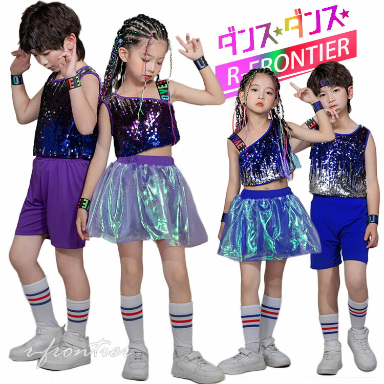 子供ダンス着 セット トップス&パンツ スカート ステージ衣装 スパンコール衣装 キラキラ 目立つ サークル 団体 文化祭 学園祭 ダンスウェア