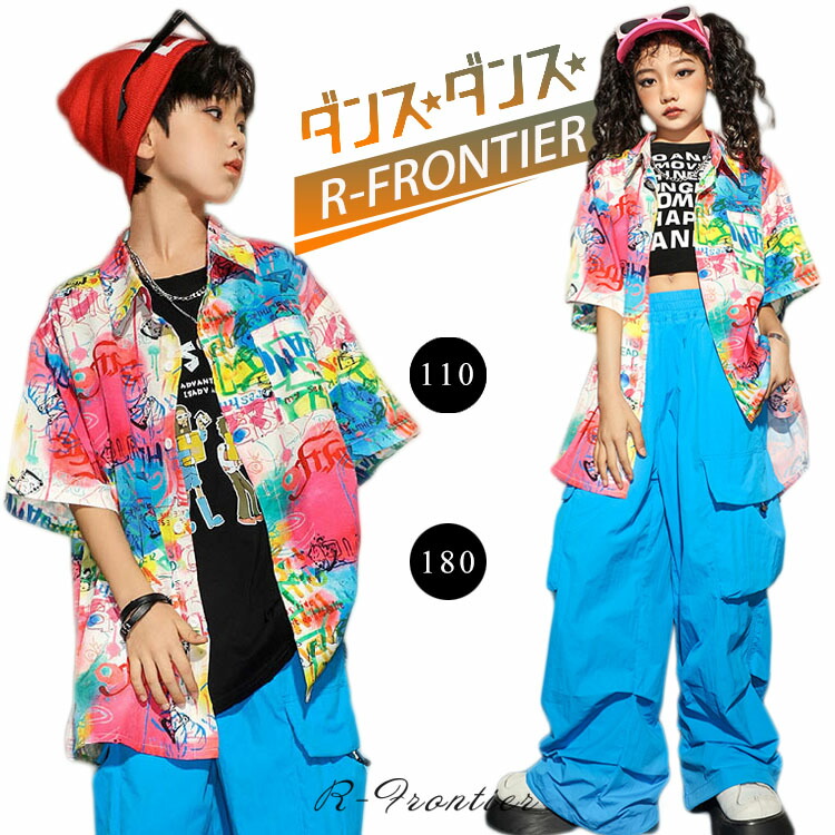 キッズダンス衣装 ヒップホップ 花柄シャツ 青パンツ 女の子 男の子 かっこいい セットアップ ジャズダンス 韓国 ゆるシャツ 子供 イベント 発表会 演出服 応援 110 180