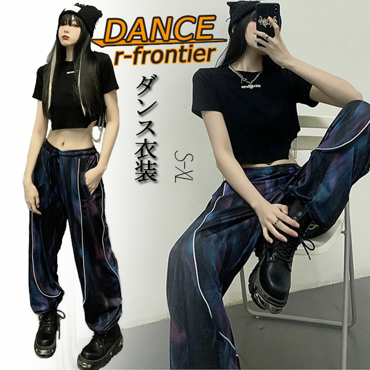 ダンス 衣装 セットアップ - レディース へそ出し トップス ゆるパンツ 韓国 ダンス 衣装 ジャズダンス ヒップホップ ダンスウェア 練習着 舞台用 演出服 練習着 フリーサイズ