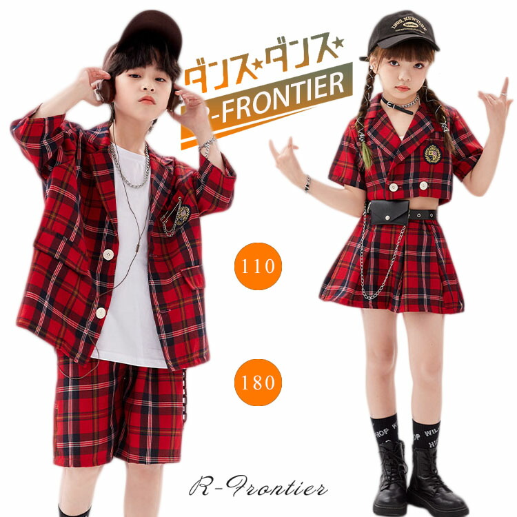 ダンス衣装 赤 黒 ヒップホップ キッズ セットアップ ダンススーツ へそ出し トップス 女の子 かっこいい 男の子 チェック柄 韓国 -衣装 キッズ 演出服 イベント 発表会 応援 110