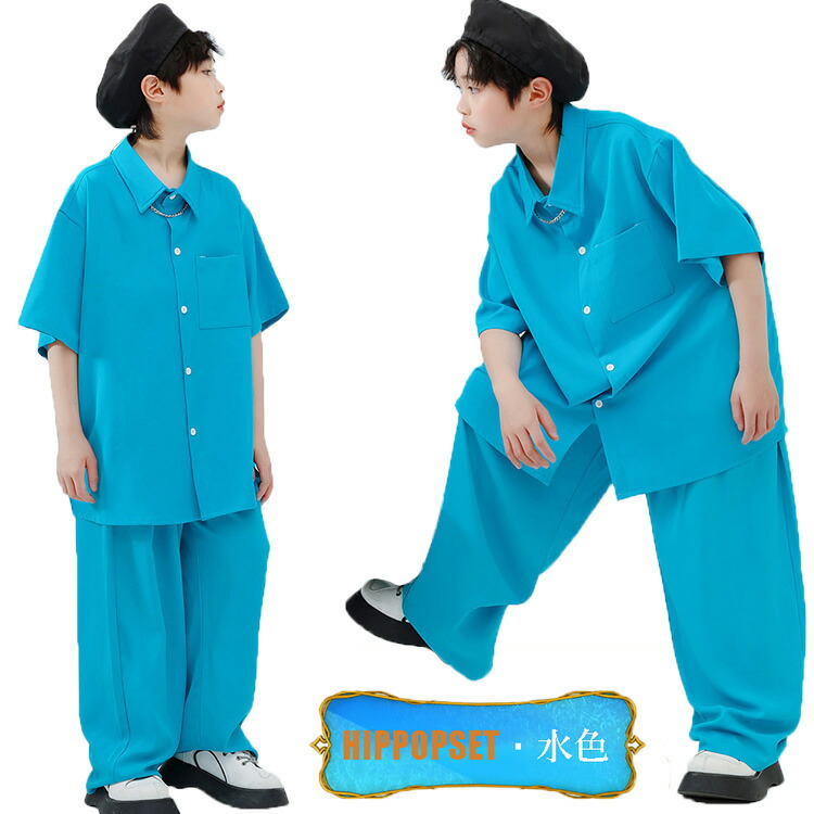 キッズダンス衣装 ヒップホップ 花柄シャツ 青パンツ 女の子 男の子 かっこいい セットアップ ジャズダンス 韓国 ゆるシャツ 子供 HIPHOP イベント 発表会 演出服 応援 110 180