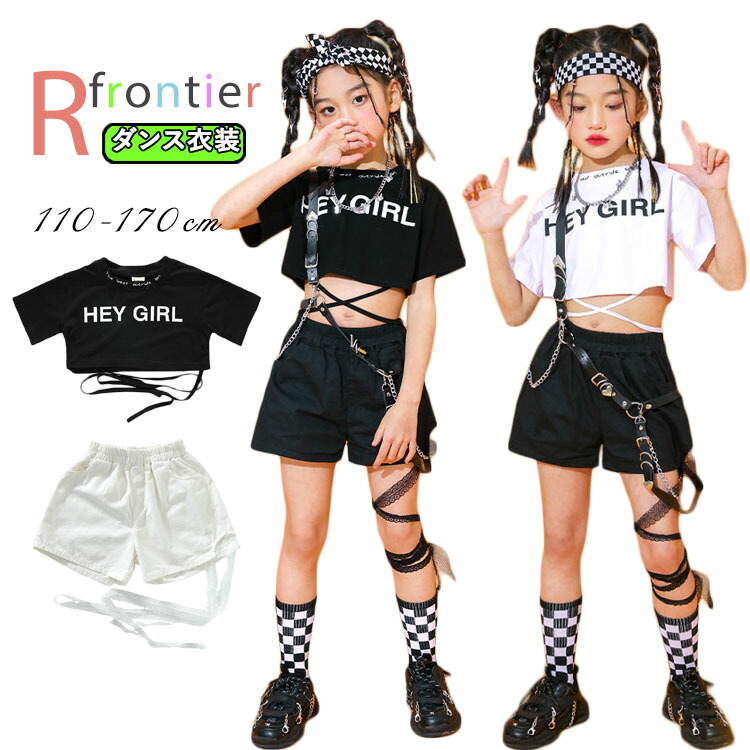 ダンス トップス へそ出し キッズ 女の子 セットアップ 白パンツ チアガール衣装 ショート丈 tシャツ 短パンツ 韓国 k-pop衣装 ヒップホップ ジャズダンス かっこいい 演出服 発表会