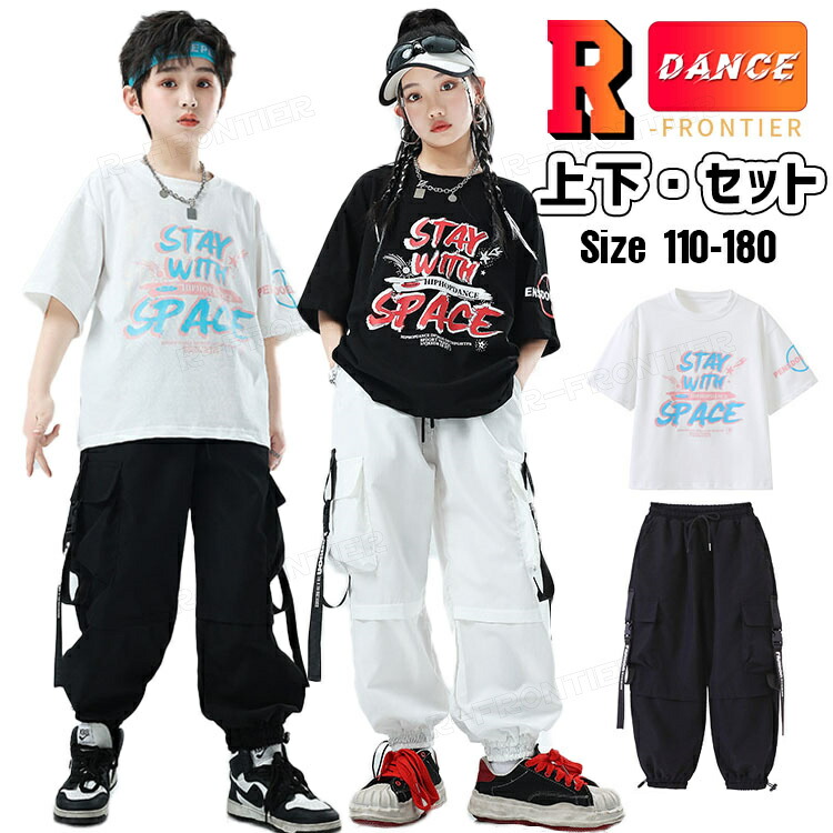 ダンス衣装 キッズ ヒップホップ 黒tシャツ 白 ダンスパンツ ゆったり ジャズダンス ユニセックス 男の子 韓国 hiphop セットアップ 演出服 応援団 練習着 110 180
