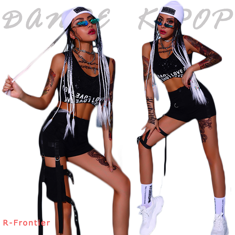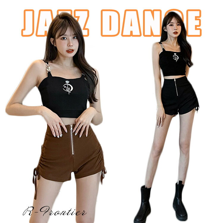韓国 ダンス 衣装 セットアップ レーディス へそ出し トップス ハーフパンツ ショートパンツ ブラックセット 黒 かっこいい 上下セット 2点セット ジャズダンス 衣装