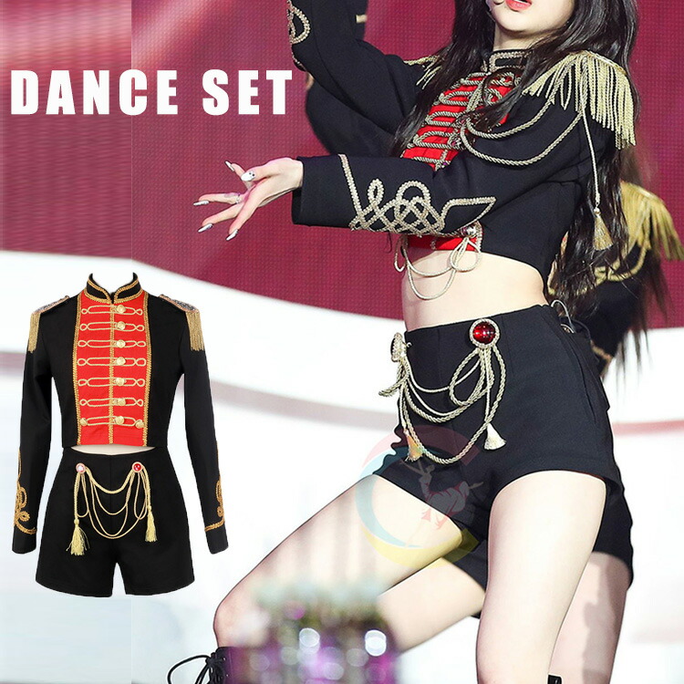 ダンス 衣装 大人衣装 K-POP レディース イベント衣装 へそ出し ブラウス シャツ ハーフスカート ネクタイ キラキラ スパンコール セットアップ テロテロ 韓国 長袖 細身