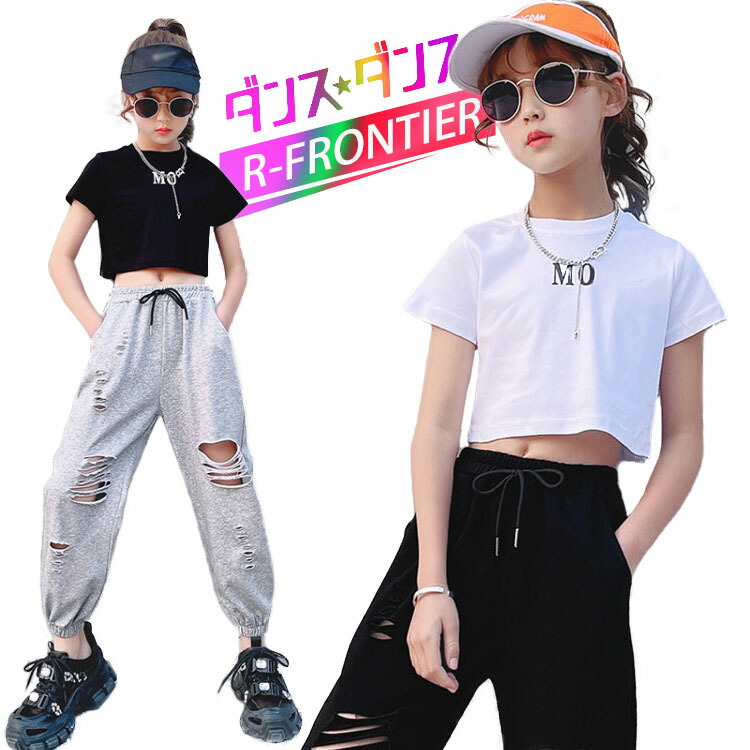 キッズ セットアップ 女の子黒白 tシャツ ロングパンツ ジャズダンス ガールズ 演出服 応援団 練習着 発表会 運動会 普段着 ダンス衣装 110-170cm