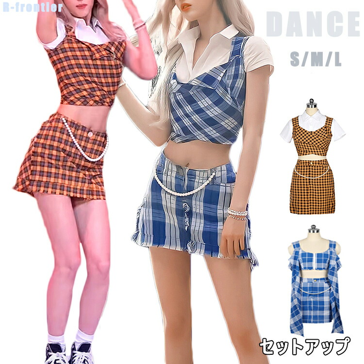 k-pop 衣装 大人 衣装 レディース K-POP イベント衣装 ダンス衣装 セットアップ へそ出し チェック柄 格子柄 ブルー イエロー セクシー 韓国 ダンス 衣装 細身 ステージ衣装