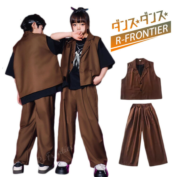 キッズ ダンス衣装 茶色 セットアップ ダンススーツ 女の子 男の子 かっこいい ヒップホップ ジャズダンス ジュニア 韓国 -衣装 団体 イベント 110-180